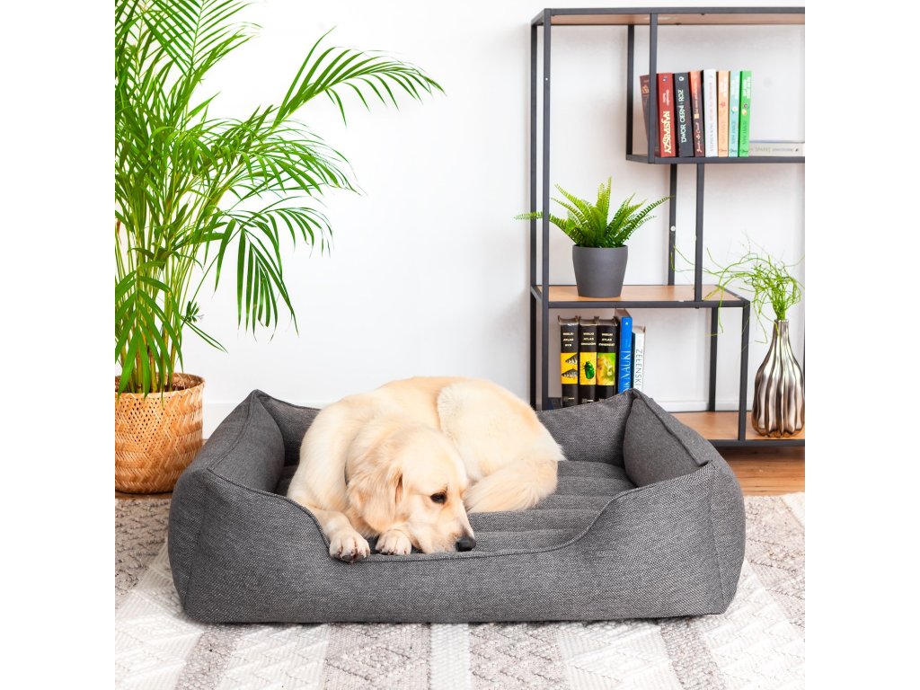 Obdélníkový pelíšek pro psa z odolného a nešustivého materiálu, který je vhodný i pro velká plemena psů.
