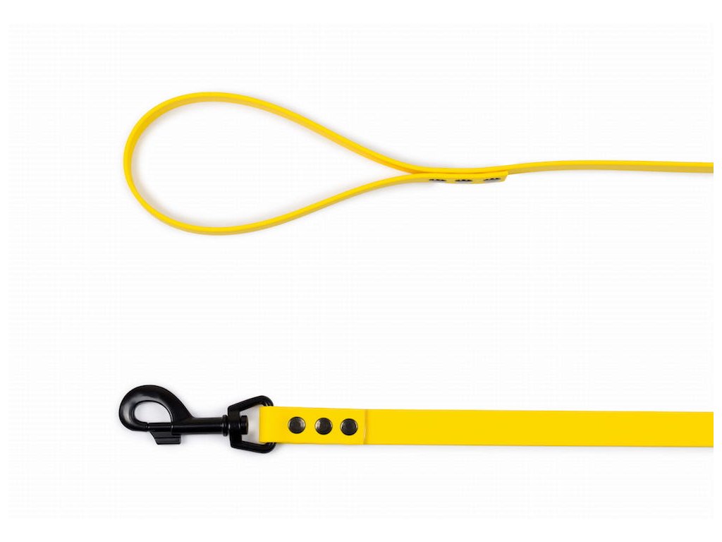 Vodítko žluté barvy je vyrobené z materiálu BioThane, které je odolné, nedrží pachy ani voda či vlhkost mu nevadí. Pokud se ušpiní, stačí ho umýt mýdlovou vodou.