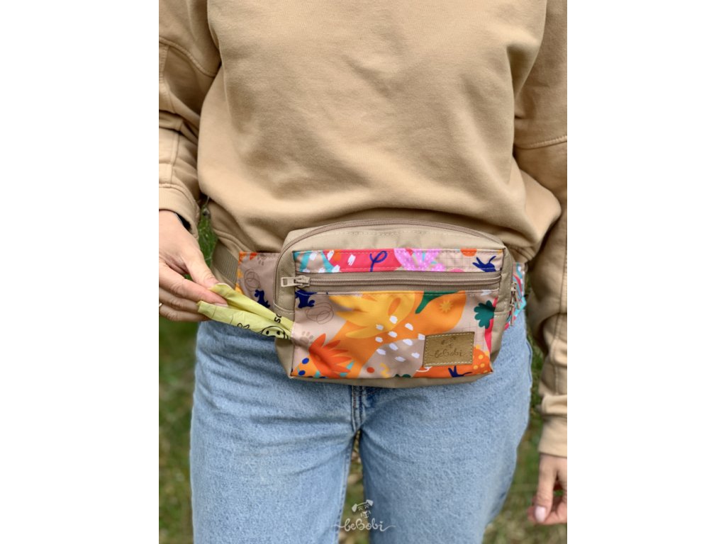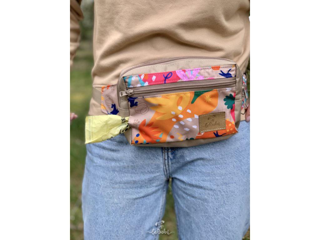 Promyšlené členění zahrnuje tři samostatné kapsy na zip, do kterých pohodlně uložíš telefon, klíče, peněženku i další drobnosti. Přední kapsa je vybavena praktickým otvorem na sáčky na exkrementy, takže je máš vždy rychle po ruce. Nechybí ani postranní poutko pro připnutí dalšího příslušenství jako hadřík, cestovní miska atp.