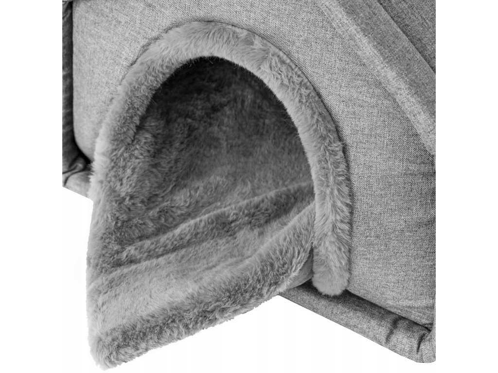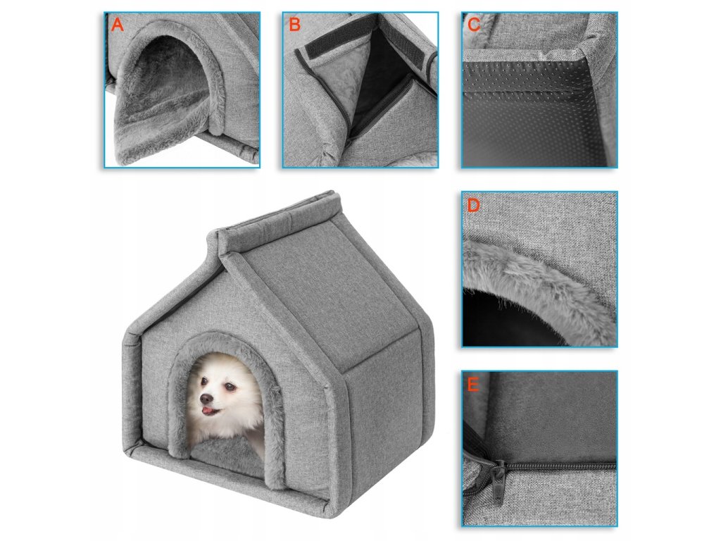 Stylová textilní bouda pro psa s plyšovou vnitřní úpravou. Látková bouda pro psa DOGGY poskytne vašemu mazlíčkovi uzavřený prostor pro klid a pohodlí k odpočinku. Díky jednoduchému složení a minimální hmotnosti můžete vzít tento psí domeček všude s sebou, ať už se chystáte vycestovat kamkoliv. Látková bouda je vyrobena z pevného materiálu ekolen, který je příjemný na dotek a odolný proti poškrábání a jiným mechanickým vlivům. Vnitřní část je z příjemného hřejivého materiálu. Součástí je také plyšová podložka pro psa.