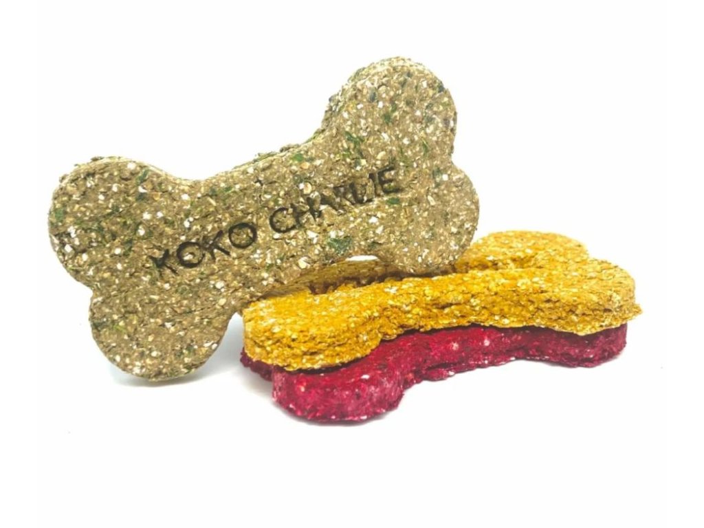 Kostička má 12 cm a vybrat si můžete ze tří příchutí - mrkev, špenát a řepa!