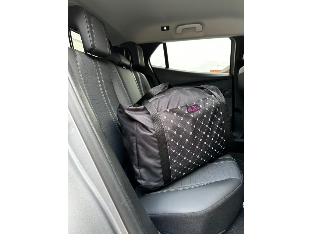 Potah pro psy Royalty je ušitý v měkké kordury, mírně vypolstrovaný, pevný a odolný. Boky jsou na zip a pro větší stabilitu je přichytíte pomocí nastavitelných pásků za madlo na ruku. K potahu jsou 4 samostatné "kapuce" na hlavové opěrky. Celý potah Royalty je zabalený v praktické tašce v barvě potahu.