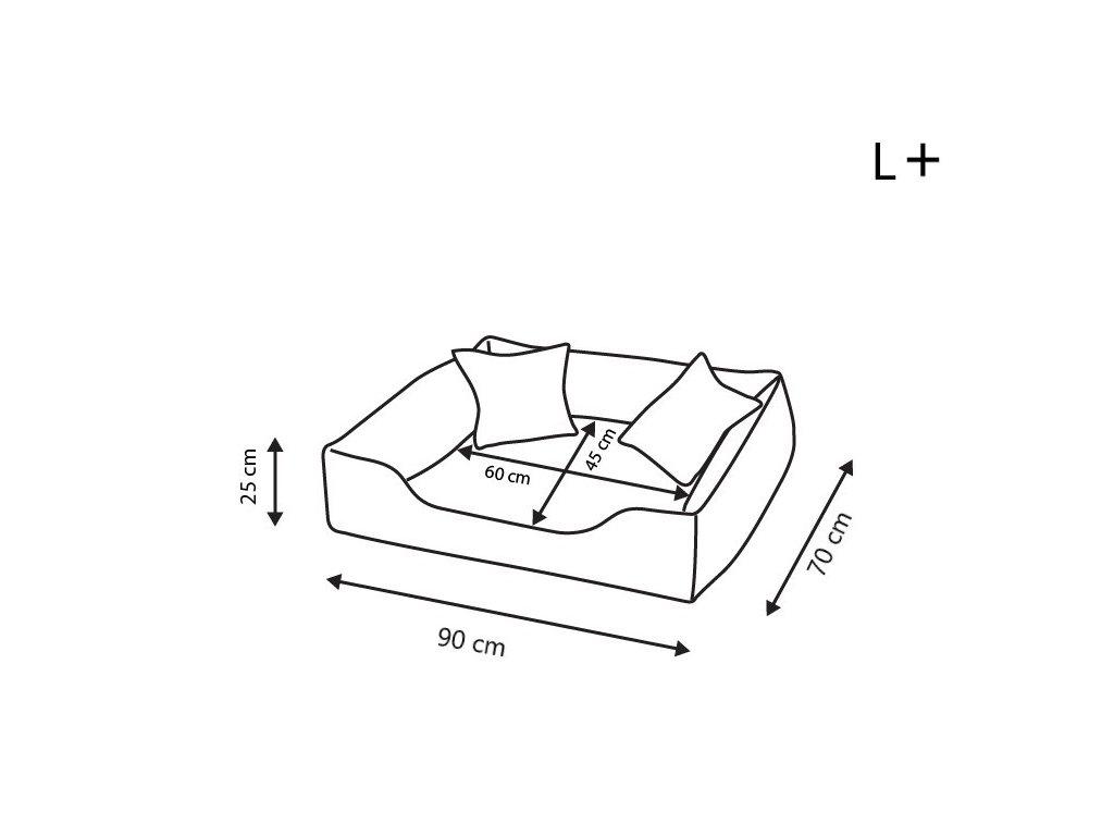 L - 90x70 cm vnitřní 60x45 cm/5 cm matrace (z toho 2cm paměťové pěny)