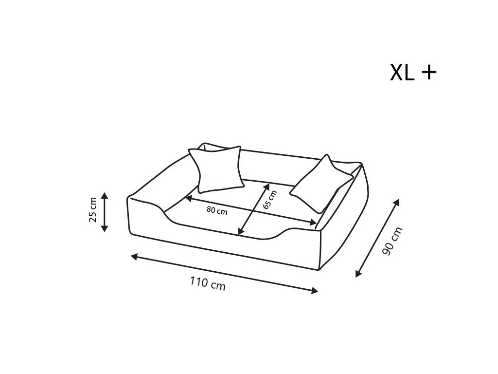 XL - 110x90 cm vnitřní 80x65 cm/5 cm matrace (z toho 2cm paměťové pěny)