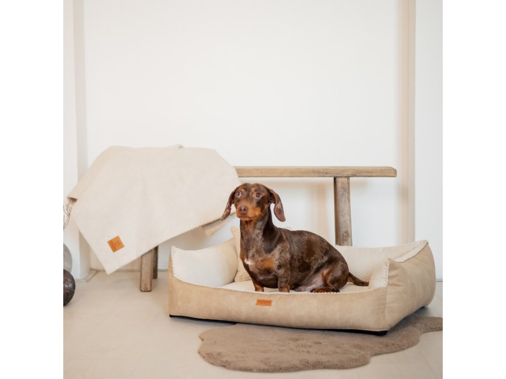 Stylový ortopedický pelíšek ANCONA pro vašeho pejska. Se 7 cm vysokou matrací, která podporuje klouby i páteř, potahem snadno snímatelným a pratelným, certifikovanými hypoalergenními materiály a spodní protiskluzovou vrstvou – spojuje komfort, odolnost a nadčasový design.