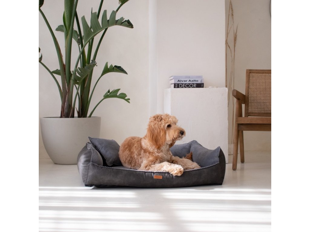 Stylový ortopedický pelíšek ANCONA pro vašeho pejska. Se 7 cm vysokou matrací, která podporuje klouby i páteř, potahem snadno snímatelným a pratelným, certifikovanými hypoalergenními materiály a spodní protiskluzovou vrstvou – spojuje komfort, odolnost a nadčasový design.