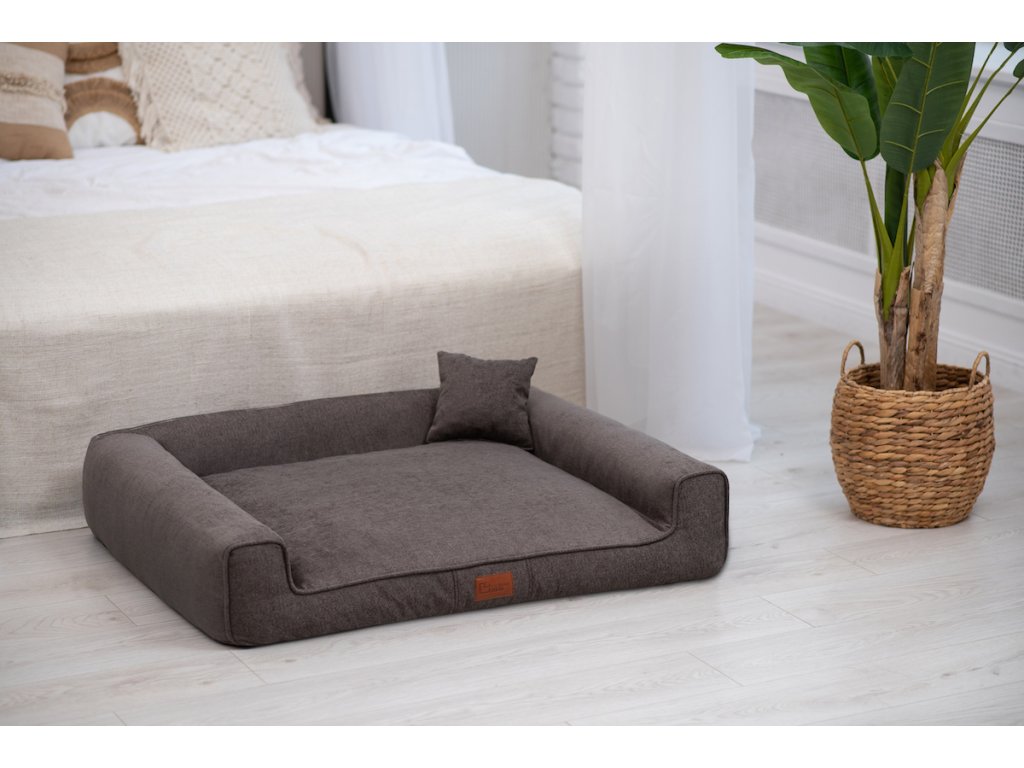 Pohodlný pelíšek pro psa Sofi, který má pouze 3 bočnice. Tím je vhodný i straší pejsky, kteří už těžce překračují hrany, ale zároveň jim právě 3 boky dopřejí pocit bezpečí a mohu se o ně opřít.
