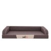 Pelíšek pro psa s postranním okrajem a pevnou ležící plochou. Použitý materiál je nešustivá a odolná tkanina Inari.