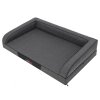 Pelíšek pro psa s postranním okrajem a pevnou ležící plochou. Použitý materiál je nešustivá a odolná tkanina Inari.