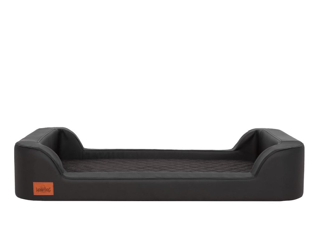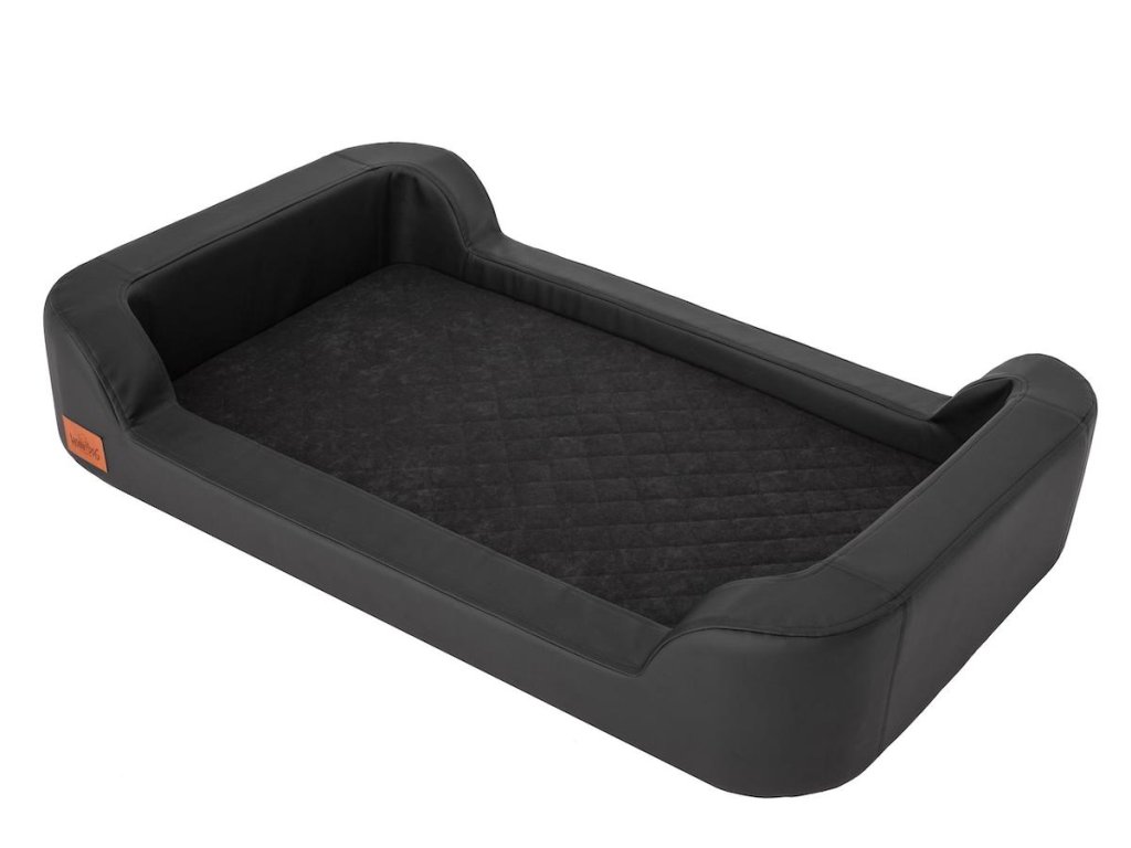 Pelíšek pro psa s nízkým postranním okrajem z eko kůže a příjemné tkaniny. Tento psí pelech je vhodný i pro starší hafíky, kteří těžko překračují vysoké okraje.