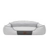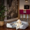 Pelíšek pro psa s vysokým zadním okrajem v šedé barvě s rozměrem do 110 cm.